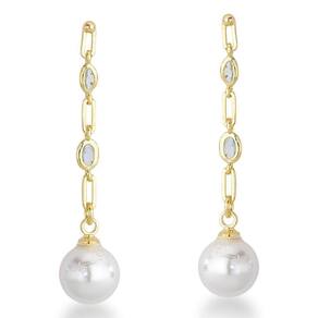Brinco Delicado Pérola e Corrente Banhado a Ouro 18k Cristal -