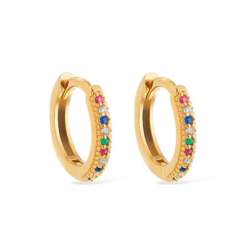 Brinco Dourado De Argolinha Com Pedras Coloridas