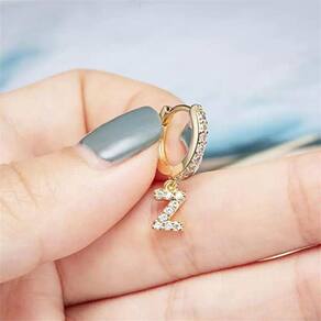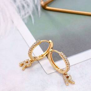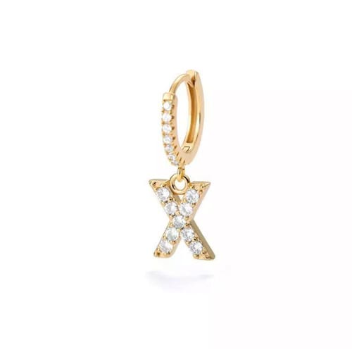 Brinco dourado inicial alfabeto letra x argola strass