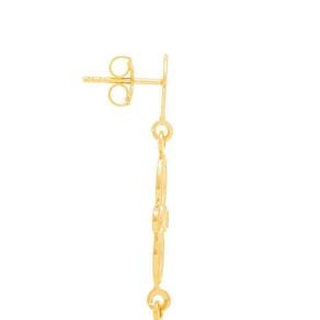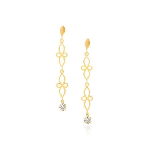 Brinco base formato de folha, composto por peças estilizadas e tendo cristal de redondo de 5mm nas pontas. Med 5,9 cm
