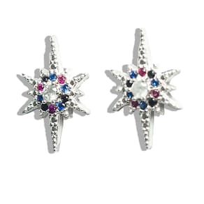 Apresentamos os Brincos de Estrela Meteoro de Zircônia Mista em Prata 925, uma verdadeira declaração de beleza e qualidade.