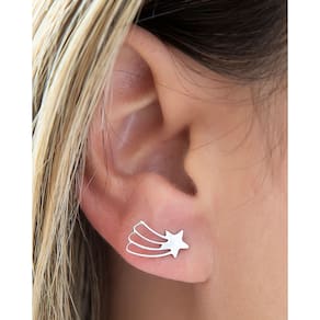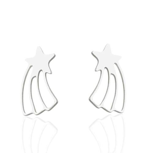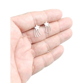 1 x Brinco Feminino Estrela Cadente Antialérgico Aço Inoxidável 1 x Embalagem