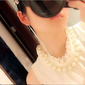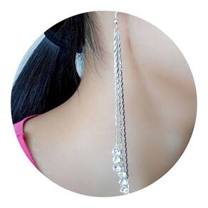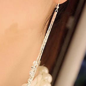 Compre agora Brinco Feminino Franja Longo Fino 3 Bolinhas Strass Prata