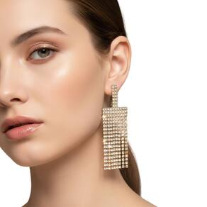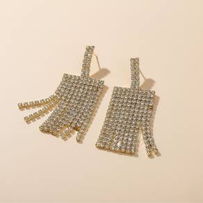 Eleve o seu look com o brilho sofisticado destes brincos de franja. Compostos por diversas fileiras de strass de alta qualidade, eles captam a luz a cada movimento, criando um efeito deslumbrante. O design pendente alonga a silhueta do rosto, oferecendo um visual moderno e extremamente elegante para ocasiões que pedem um toque extra de brilho.