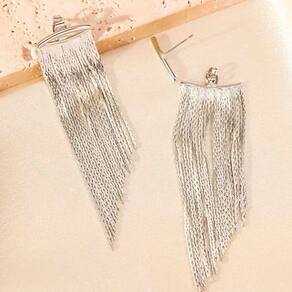 Brinco Feminino Longo Franja Luxo Festas Jóias Prata