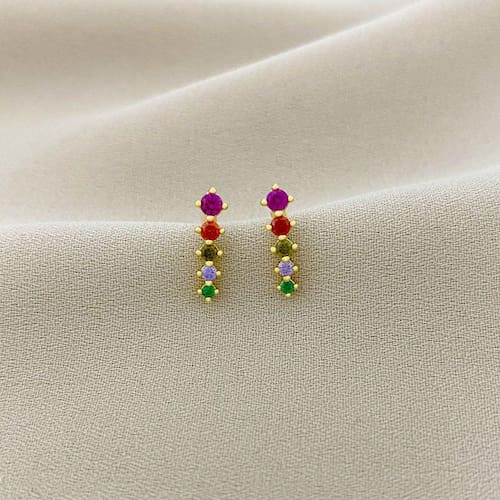 Brinco Fio com Zircônias Redondas Coloridas Banhado a Ouro