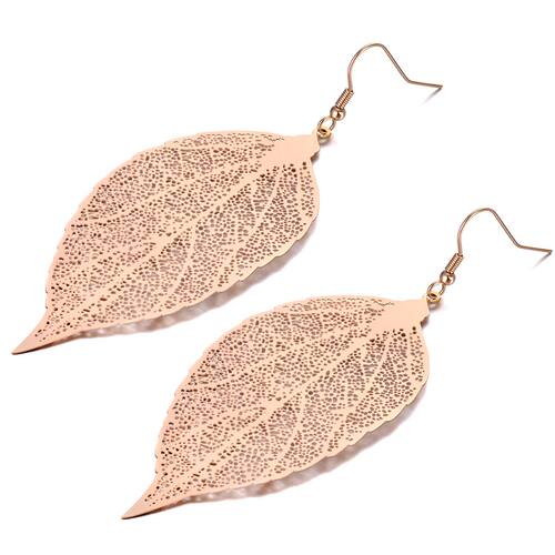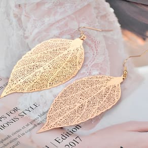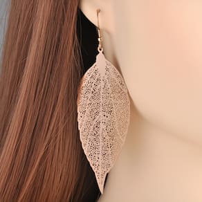 Um brinco delicado em forma de folha, meticulosamente trabalhado para capturar a textura e os detalhes naturais da folha. O design apresenta veias finas e curvas suaves que imitam a elegância e a simplicidade da natureza. A peça é banhada a ouro rosê, conferindo um brilho suave e sofisticado, que destaca os detalhes esculpidos.