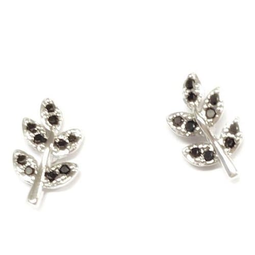 Brinco Folha Com Zircônias Pretas Folheado A Ródio