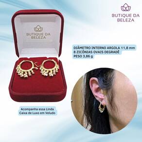 descrição do produto brinco banhado a ouro argola click com zircônias degrade apresentamos a vocês essa linda peça em semijoia folheada a ouro 18k. Esse modelo de brinco possui o fechamento em click, o que faz com que a semijoia seja fácil de colocar e tirar, tornando-a muito prática para o uso diário. As 8 zircônias que compõem o brinco exibem brilho e elegância, fazendo com que a peça possa ser utilizada em noites casuais. Para finalizar, a versatilidade aliado com o charme fazem dessa peça seu ponto forte. Não perca essa oportunidade. Nós da butique da beleza temos as peças mais exclusivas para os clientes mais exigentes. O que oferecemos um banho de ouro 18k, com qualidade , cor e tonalidade idênticas ao de uma peça de ouro 18k. Vendemos a experiência de você poder usar um produto arrojado, se sentir bela o e elevar sua autoestima. Embalagem caixa veludo de luxo foto do anúncio para você guardar sua semijoia e mantê-la brilhante por muito tempo. É bijuteria ou semijoia todas nossas peças são semijoias, ou seja a deposição de ouro sobre o metal pode ser até 250 vezes maior que a quantidade de ouro 18k depositada em uma peça de bijuteria. Portanto o que nós oferecemos é qualidade. É banhado ou folheado a ouro os dois termos significam a mesma coisa, referem-se ao processo de galvanoplastia onde o metal, nesse caso o ouro , é adicionado a peça, conferindo proteção, brilho e cor, sendo estas características gerais de uma semijoia de qualidade. As semijoias dão alergia não, nossos produtos são níquel free, cádmio free e cinza free, todos esses compostos químicos são alérgicos e estão fora de nosso processo de produção. Tem garantia sim , 6 meses mediante apresentação do certificado de garantia Marca: Butique Da Beleza