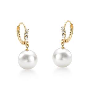 01Brinco Gancho Pérola+Cristal Folheado a Ouro18k Hipoalérgico