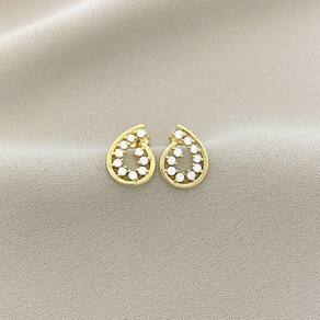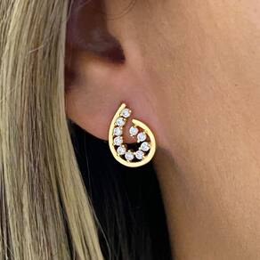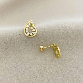 Brinco Gota com destalhes de Zircônia Banhado a Ouro