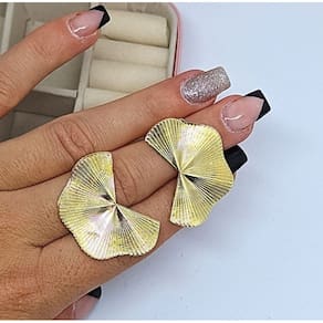 Brinco Leque Tamanho Médio com Detalhes Frizados Desperte a elegância e o charme em cada ocasião com o nosso Brinco Leque Tamanho Médio, adornado com detalhes frizados que garantem um toque de sofisticação. Este brinco, folheado a ouro 18k, é a escolha perfeita para quem valoriza acessórios de qualidade. Características do Produto: