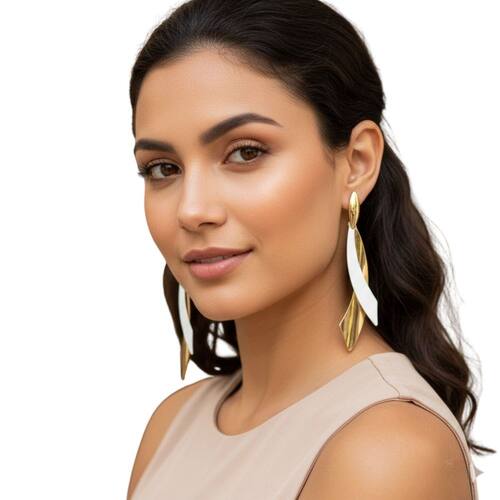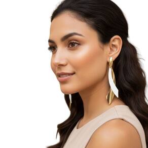Brinco de design contemporâneo com linhas geométricas e acabamento elegante. Leve e confortável, é ideal para compor produções modernas, do casual ao sofisticado. O formato alongado valoriza o visual e traz movimento, sendo uma peça versátil para diferentes ocasiões.