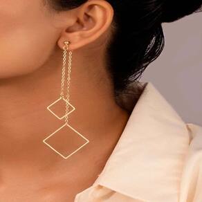 Brinco Longo Corrente Quadrado Feminino Dourado Elegante