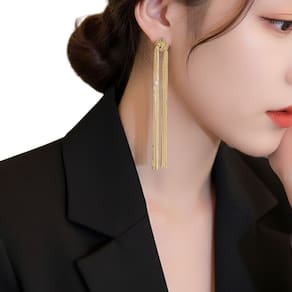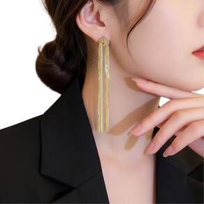 Brinco alongado com base em nó e franjas finas, proporcionando movimento e sofisticação ao visual. Ideal para eventos, festas, ocasiões especiais e composições modernas e sociais.