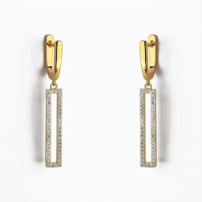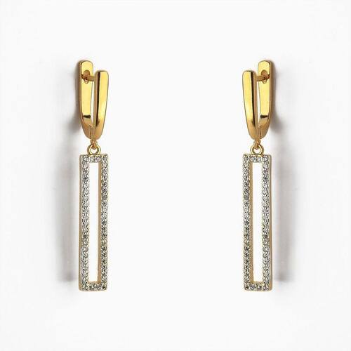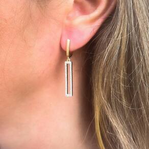 Brinco Longo com Design Retangular cravejado com Zircônia Banhado a Ouro 18K -