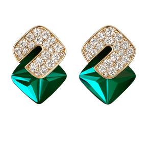 Brinco Geométrico Luxo – Verde com Zircônias 2x3cm