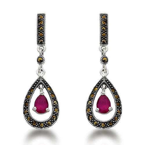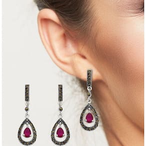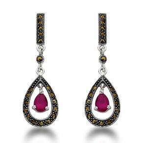 Brinco Médio com Gota de Pedra Natural Prata 925 Rubi Indiano -