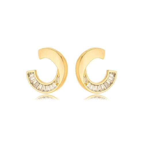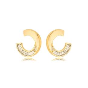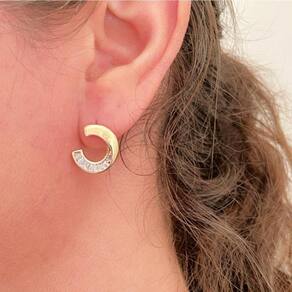Brinco Meio Circulo Cravejado Banhado A Ouro 18k