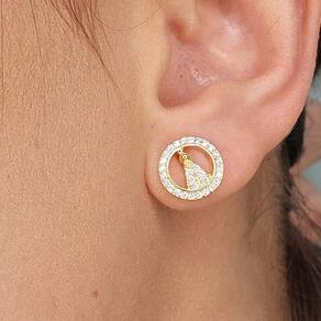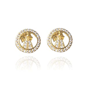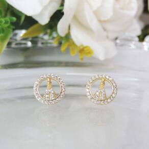 Esse brinco é composto por uma Nossa Senhora toda trabalhada em zircônias, perfeito para que ama acessórios com brilho e religiosos.
