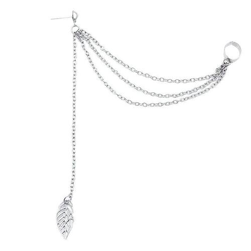 Brinco de solitário bonito com correntes e pingente de folha, prata color trend usando este design exclusivo de brinco de solitário para qualquer orelha esquerda ou direita que complementará qualquer tipo de roupa, proporcionando um toque único e internacional. Compre agora e use um acessório com um estilo único que certamente se destacará na sua personalidade.