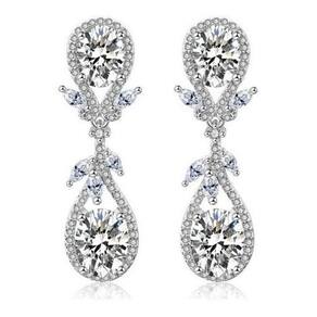 Brinco banhado a ródio com pedras de zircônia brancas. 3,6 cm de comprimento. Ideal para noivas, madrinhas, debutantes, formaturas e festas em geral. Simplesmente LINDO Acompanha caixinha de presente super luxuosa Marca: De Castro Joias Ean: 7895340002219