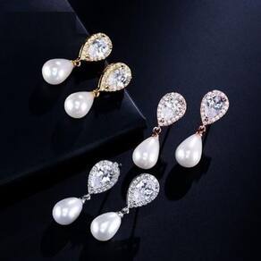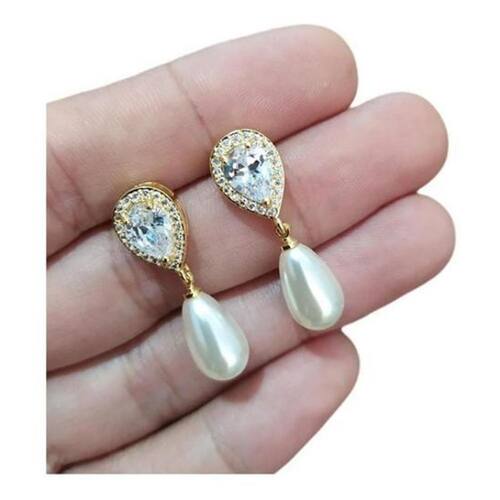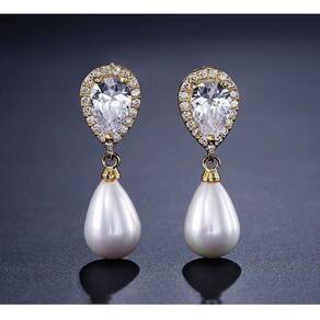 Brinco banhado a ouro com zircônias e pérolas Shell 2,7 cm de comprimento Semi jóia de ótima qualidade. Ideal para noivas, madrinhas, debutantes, formaturas e festas em geral. Marca: De Castro Joias Ean: 7896761816904