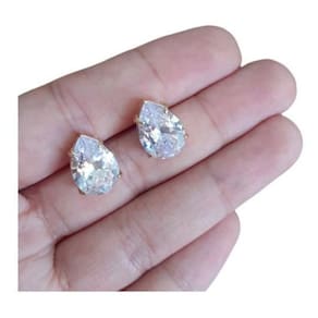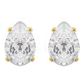 Brinco folheado a ouro com pedras de zircônia. 1,4 cm de comprimento. Ideal para noivas, madrinhas, debutantes, formaturas e festas em geral. Marca: De Castro Joias Ean: 7899300599696