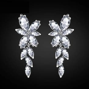 Brinco banhado a ouro branco com pedras de zircônia. 3,8 cm de comprimento. 1,6 cm de largura. Ideal para noivas, madrinhas, debutantes, formaturas e festas em geral. Acompanha caixinha de presente. Simplesmente LINDO Marca: De Castro Joias Ean: 7891431179006