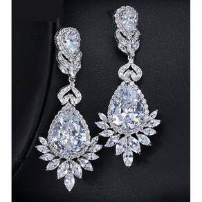 Brinco Noiva Zirconia Prata Festa Debutante Luxo Pendurado Brinco banhado a ouro branco com pedras de zircônia. Tamanho: 6,5 cm de comprimento. Ideal para noivas, madrinhas, debutantes, formaturas e festas em geral. Uma linda peça para ser usada nas ocasiões mais importantes de sua vida.