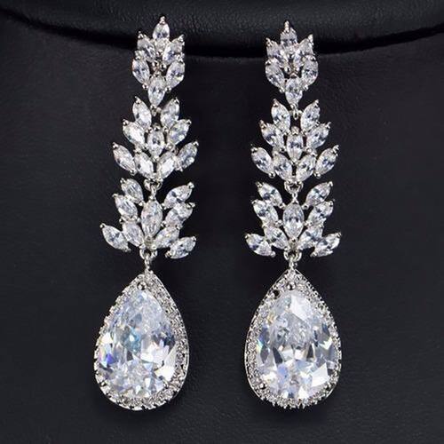 Brinco Noiva Zirconia Prata Pendurado Festa Debutante Luxo