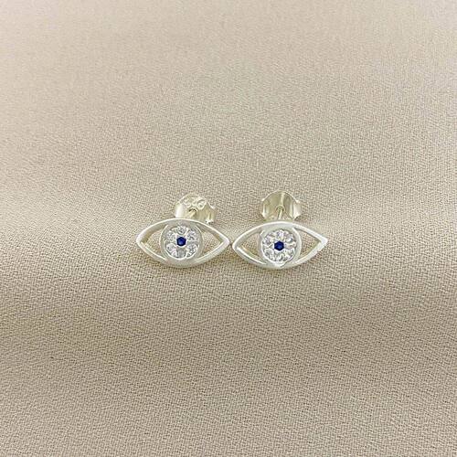 Brinco Olho Grego com detalhes de Zircônia em Prata 925