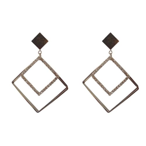 Brinco Pendente Grande - Selecione o seu Modelo Preferido Cor: 3 Quadrados Liso Ródio Brinco Pendente Grande - Selecione o seu Modelo Preferido