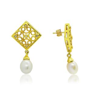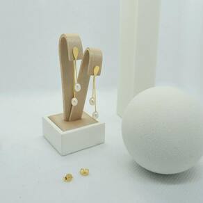 As pérolas na ponta do pêndulo conferem um charme atemporal a essa peça, combinando perfeitamente com a tonalidade vibrante do ouro 18K. O movimento suave e elegante do pêndulo cria um efeito cativante, que certamente chamará a atenção.