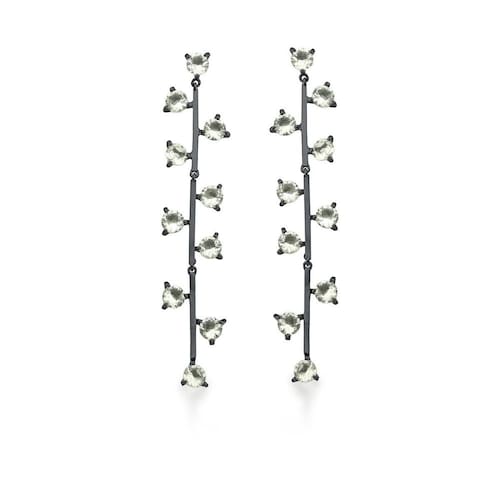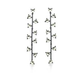 Brinco Pêndulo com Cristais Prasiolita Banhado a Ródio Negro. Design diferenciado e qualidade que você vai amar. Arrase