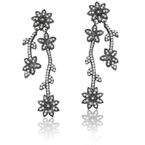 Brinco Feminino Pêndulo Flores com Zircônias Brancas e Banhado a Ródio Negro. Acessórios Femininos deixa o visual ainda mais lindo e sofisticado. Arrase