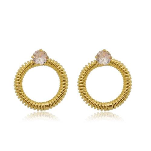 Brinco Pequeno Círculo Estilo Mola e Ponto De Luz Semijoia Banho De Ouro 18k