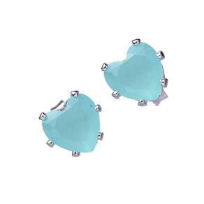 Brinco Pequeno Coração Pedra Azul Folheado A Metalico