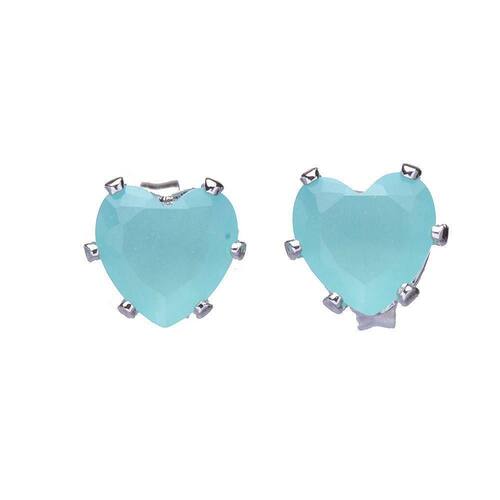 Brinco Pequeno Coração Pedra Azul Folheado A Metalico