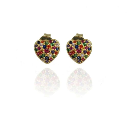 Seja o símbolo do amor em cada detalhe com o nosso Brinco Pequeno de Coração com Zircônias Colorido Folheado a Ouro 18k.