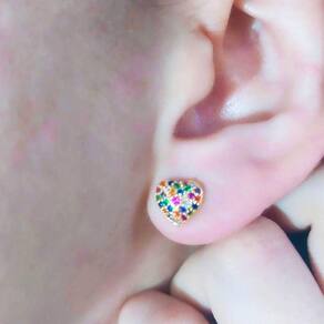 Seja para você mesma ou para presentear alguém querido, o Brinco Pequeno de Coração com Zircônias Colorido Folheado a Ouro 18k é a escolha perfeita para adicionar um toque de amor eterno ao seu estilo.