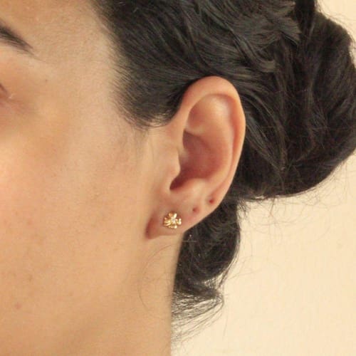 Elegante Brinco Pequeno Trevo com Ponto de Luz Semijoia Banho de Ouro 18K. As peças recebem um tratamento hipoalergênico, pensando especialmente em nossos clientes, embalado individualmente com embalagens personalizadas preparado com muito carinho acompanhado pelo certificado de garantia. Perfeito para embelezar e completar seu estilo com delicadeza e sofisticação. Confira as dimensões: Altura: 0,2 cm , Largura: 0,6 cm , Comprimento: 0,6 cm , Peso: 0,5 g