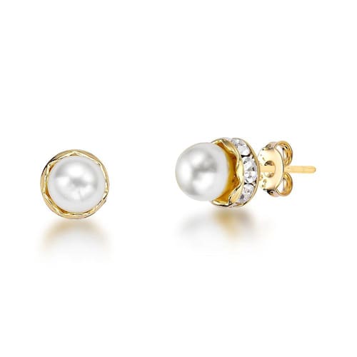 Brinco Pérola 7mm+Cristal Folheado a Ouro 18k
