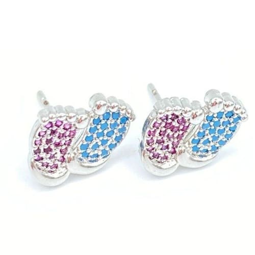 Brincos pezinhos trazem consigo um charme incomparável São considerados acessórios estilosos e supermodernos, perfeitos para deixar sua composição ainda mais linda e desejável. Brinco composto por um design pezinho cravejado de zircônias coloridas azul e rosa é incrível, seus detalhes são únicos e seus aspectos são encantadores. As zircônias coloridas tendem a causar um contraste e um destaque magnífico com o banho em Rodio.