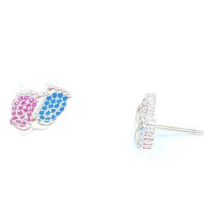 Brinco pezinho com zircônias azul e rosa folheada Ródio