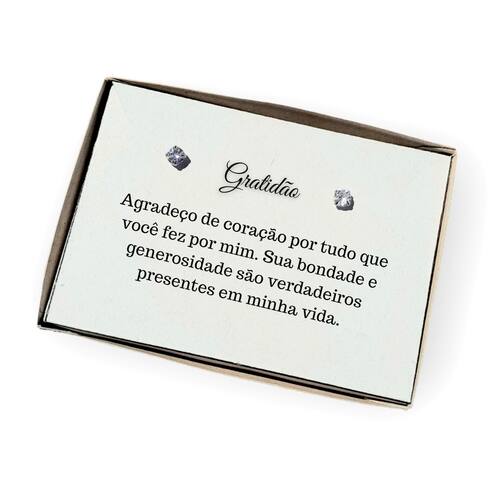 Brinco ponto de luz aço - Caixa presente com frase Gratidão