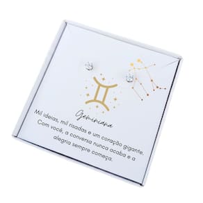 Surpreenda com um presente delicado, cheio de significado e estilo. O Brinco Ponto de Luz em aço inoxidável acompanha uma linda caixa presente personalizada com frase do signo de Gêmeos, ideal para quem ama acessórios elegantes e cheios de personalidade.