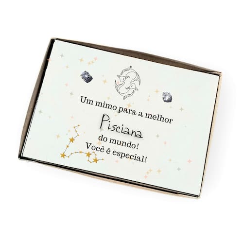 Brinco ponto de luz aço + Caixa presente com frase Signo Peixes