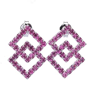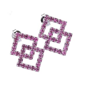 Brinco Quadrado Duplo Com Cristais Rosa Folheado A Metalico
