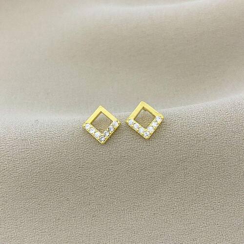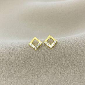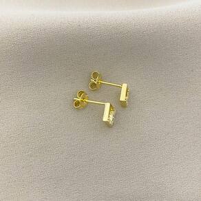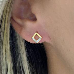 Brinco Quadrado Metade detalhes de Zircônia Banhado a Ouro